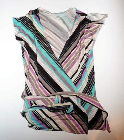 Labai graži ir patogi palaidinė, surišama dirželiu. gražios pastelinės slapvos, minkštutė medžiaga. etikečių nėra, bet dydis sakyčiau S. vilkėta vieną kartą - kaip nauja.