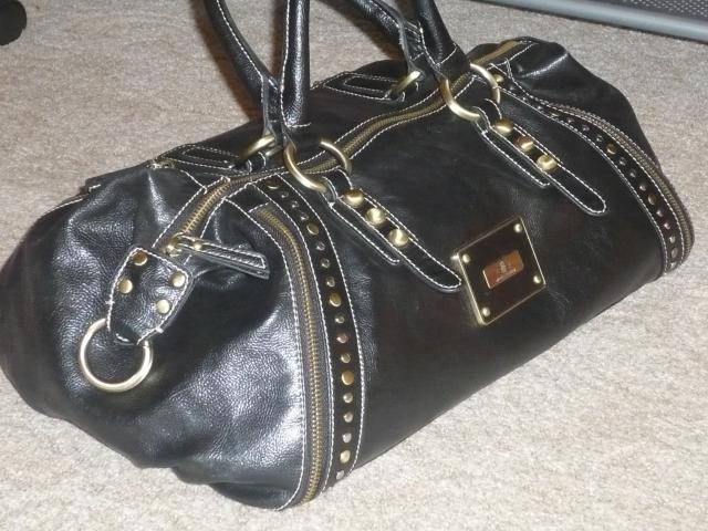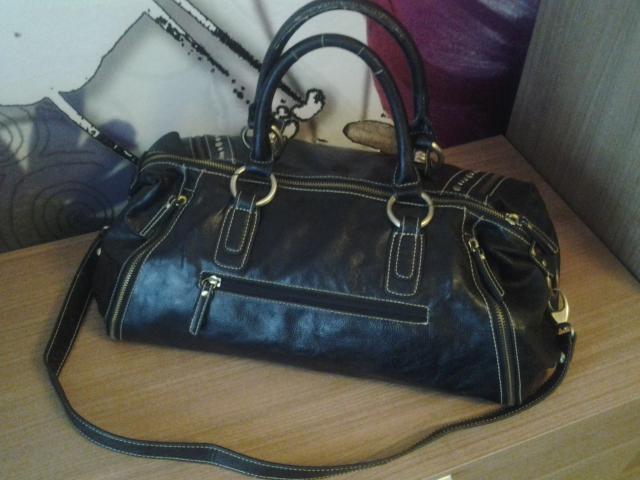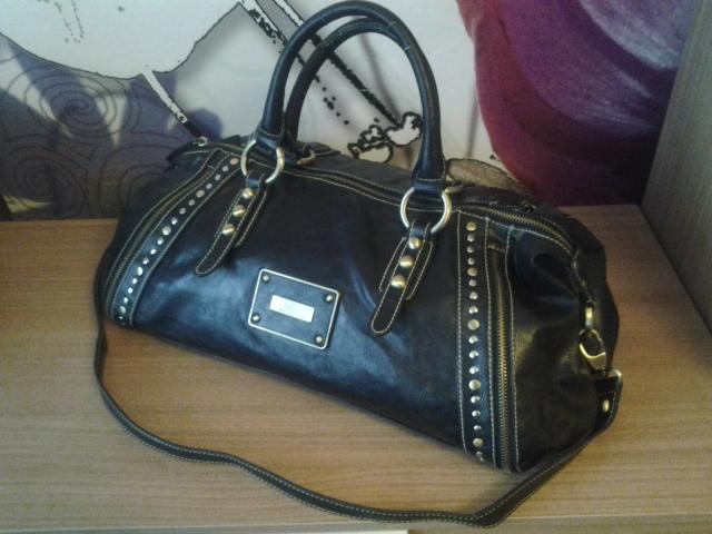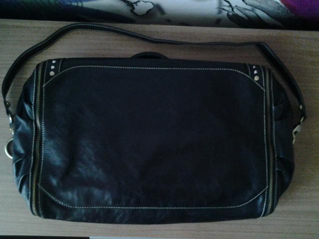 Įdomios, pailgos formos,dirbtinės odos rankinė. Su metalinėmis spalvotomis kniedėmis ir užtrauktukais.Dugnas su pakietinimu.Vienintelis nežymus,vaizdo negadinantis defektėlis truputį įskilusios mažesnės rankenos (matosi foto). Yra nauja ilga rankena.Aukštis (pakeltos) 20,5 cm,ilgis 41 cm,plotis 21 cm,rankenų ilgis 18,5 cm.
