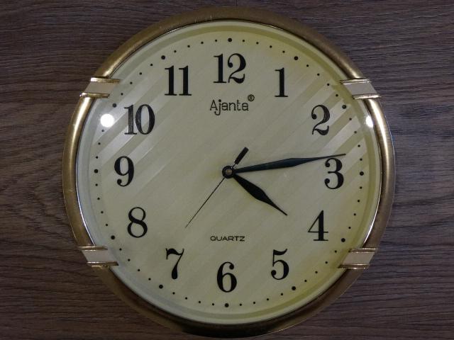 Laikrodis geltonos/auksinės spalvos. Veikiantis, su elementais; plastmasinis.