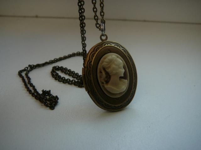 Labai stilingas medalionas. Ilga grandinėlė. Viduje galima įsidėti nuotraukytę.