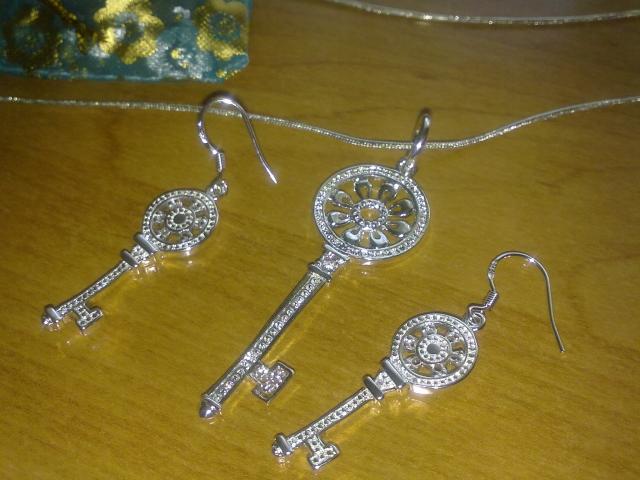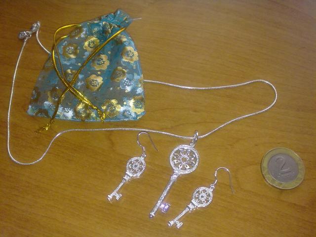 Naujas stilingas sidabrinis komplektas su fianitais. Prabos yra. Pakabukas 4,5x1,6 cm, grandinėlė 46 cm, auskarai 4x1 cm. Dovanu maisialis. Tel: 860560058