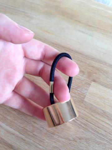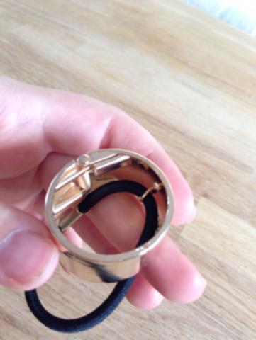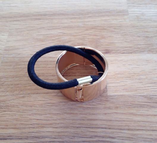 NAUJAS * funkcionalus ir puošnus; *tiks bet kuriai mėgstančiai "arklio uodegą"; *gumelė tampri ir nemažos apimties; *metalinės dalies plotis: 20mm, vidinis diametras: 33mm; *gumelės storis: 4mm, ilgis: 14mm; Sudėtis: elastinė gumelė; aukso spalvos metalo detalės;