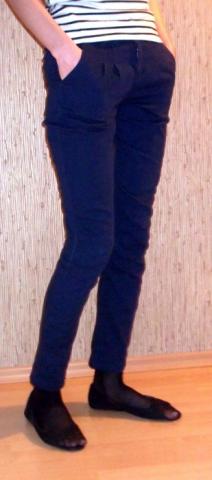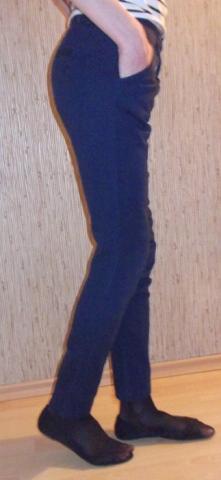 Stilingos ir gražios kelnės, iki kauliukų, tamsiai mėlynos spalvos. Fotografuota ant 175cm ūgio. Yra vienas defektukas - gale siūlė "prasiplėtusi", lyg būtų susiūta ir suklijuota, bet siūlė neprairusi (matosi paskutinėje foto). Jei reikia išmatavimų - rašykit. Tiks XXS-mažam S. NEMAINAU.
