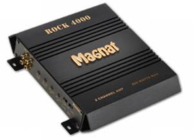 MAGNAT The Rock 4000 500w nedauk naudotas 2 kanalu, HP/LPfiltrai Low pass 40-300Hz (12 dB / octave). High pass 40-300Hz (12 dB / octave). Bass Boost 0...12dB / 45Hz Dažnių juosta:5-50,000Hz Galia: 2 x 250W, 1x500W Max