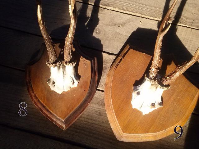 Parduodu stirnos ragus su virsutine kaukoles dalimi šiektiek apdulėję. 1.-Elnio ragai. 900 lt / 2.-Stirnos ragai 60 lt / 3.-Stirnos ragai 60 lt / 4.-Stirnos ragai 65 lt / 5.-Stirnos ragai 60 lt / 6.-Stirnos ragai 55 lt / 7.-Stirnos ragai 55 lt / 8.-Stirnos ragai 55 lt / 9-.Stirnos ragai 60 lt / 10-.Stirnos ragai 65 lt / 11. (Nežinau kieno čia dantys) Kaina sutartinė / 12.-Stirnos ragai 60 lt / 13- Stirnos ragai 70 lt / Tel. 861645152