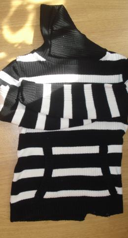 storas, juodai baltai dryžuotas megztinis. Nenešiotas.