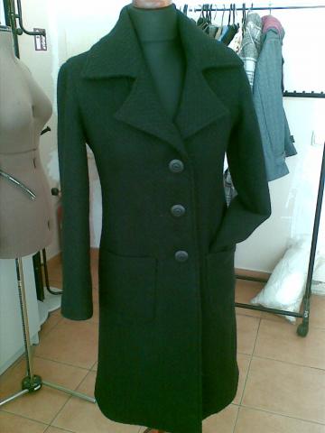 Storos šiltos vilnos ,nedėvėtas juodas paltas.Siūtas pagal Burda modelį.38-40 dydis,1,60m ūgiui,bet gražiau atrodytų ant aukštesnės merginos ar moters.
