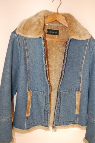 Nenešiota firmos " Klementi" rudeninė džinsinė striukė, pamušalas - dirbtinis kailis. Dydis 38 (M).