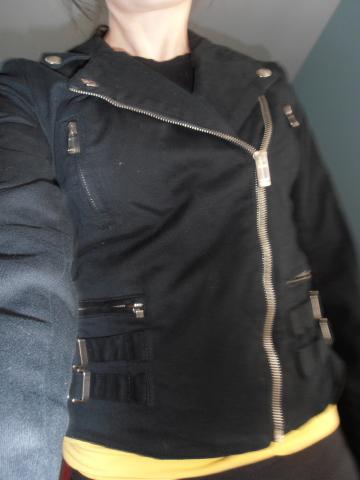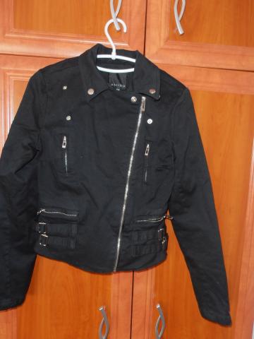 Nenudėvėtas, geros būklės švarkelis, tinkantis pavasariu- rudeniui. Rankovėse yra įsiūtas pamušalas. Medžiaga panaši į džinsą, tik šiek tiek minkštesnė, švelnesnė, storesnė. Rašo dydis 36. Išmatavimai: nuo pažasties iki kito apie 44; apačioje apie 40; rankovė nuo peties apie 62; rankovė nuo pažasties apie 47.