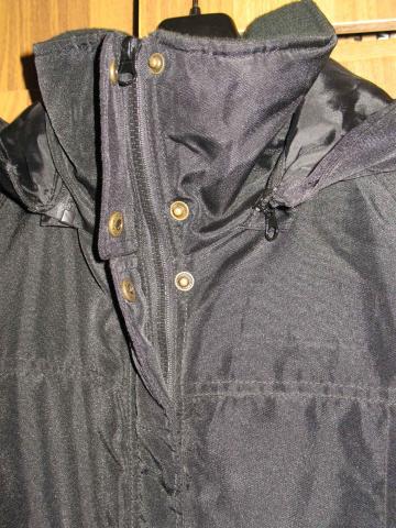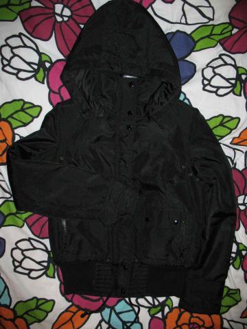 Moteriška L dydžio juoda striukė, su kapišonu (nėra kailiuko), veikia visi užtrauktukai ir segtukai,niekur nesuplyšę.