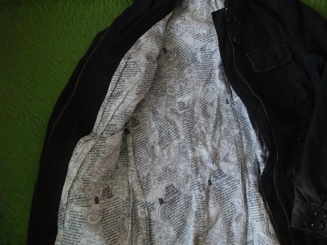 su kapisonu, medziagine, rudeniui/pavasariui. nesiota, bet puikiai islaikyta, tik spalva jau nebe intensyvi juoda o kiek pablukusi :) dydis S/M