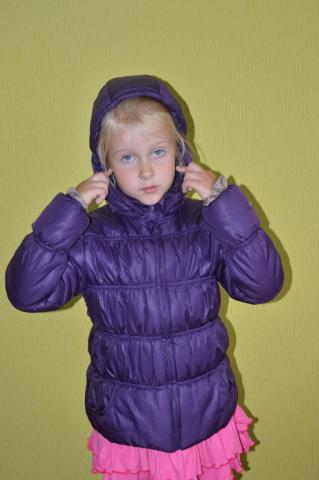 Visas striukytės ilgis ~51cm. Ilgis nuo pažasties ~28cm. Per krūtinę ~37cm (matuota po pažastimi). Rankovės nuo petukų ~46cm. Rankovės nuo pažasties ~34cm. Modeliukui 5 metukai ir 10 mėnesių. Dydis: 122.