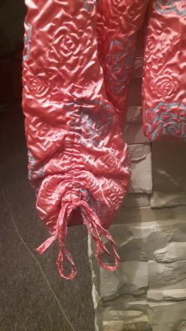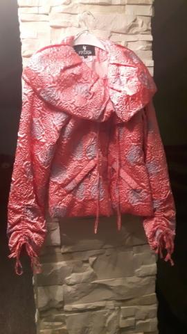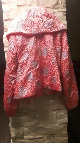 Striukyte rozine su zydromis gelytemis ant saguciu, vietomis pasiburbuliavusi. Ilgis 65cm, krutine 42cm, rankoves ilgis 62cm. +siuntimas