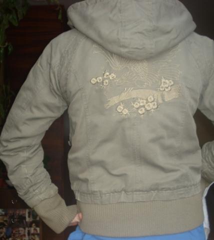 kapišonas atsisega, labai daili striukytė :) Dydis rašo M, bet matote kai atrodo ant S, ilgis ~55cm rankovės ilgis ~60cm.