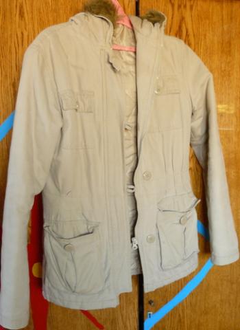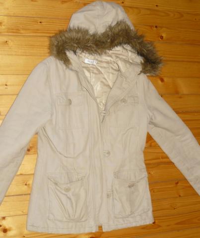 Truputį panešiota, gobtuvas su kailiuku, medžiaginė. Vėlyvam rudeniui- ankstyvam pavasariui ;)