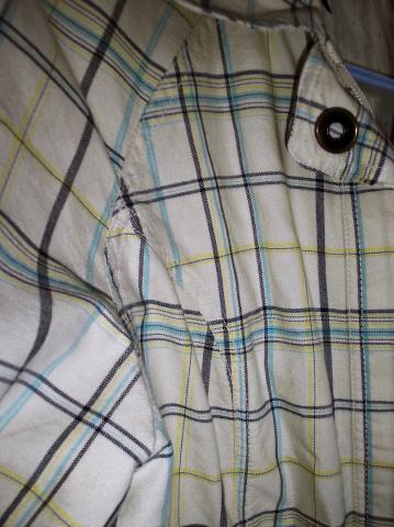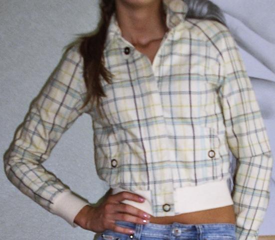 sviesio spalvos,su drydziais,geltona striukyte. uztraukiama ir dar susisega. labai mazai deveta. gan plona,galima deveti silta pavasari ar vesesni vasaros vakara :) 38 dydis