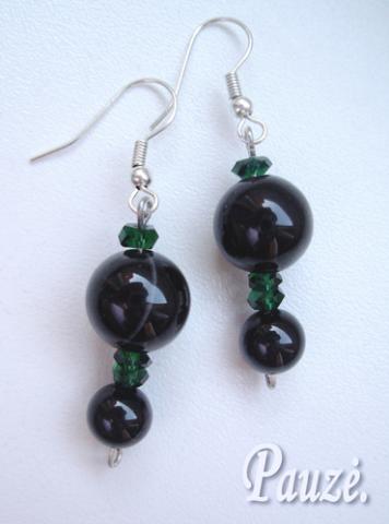 Nedideli, blizgūs auskarai. Padaryti iš žalių swarovskiukų ir agato.