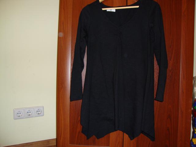Nesiota,bet nesunesiota faina sukne -tunika prie tympu.Uzpakalyje prie kakliuko yra uztrauktukas,apacia karpyta,nelygi,matosi foto.Prisitaikiusi dirziuka isvis labai graziai atrodo.Etikete nukirpta,bet kazkas i L dydi.tiksliausia butu ismatavimai.KJlauskite atsiusiu.