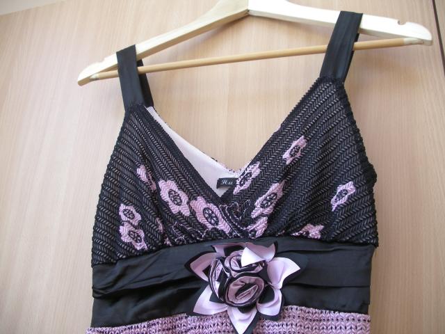 Suknelė - megzta, tampri, juoda/rožinė spalvos, nesivelia... Turi plonytį pasijonį, ilgis - maždaug iki kelių. Devėta 1 kartą.