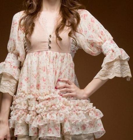 Išmatavimai: ilgis 85cm, biustas 92cm, rankovės 36cm, pečiai 34cm. Medžiaga: šifonas + nėriniai.