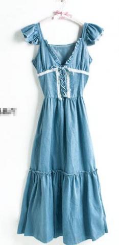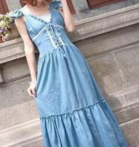 Išmatavimai: ilgis 129cm, biustas 90cm, liemuo 70-80cm. Medžiaga: džinsas.