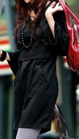 Dvi spalvos. Išmatavimai: ilgis 90cm, biustas 80-110cm, liemuo 72cm, klubai 90cm, rankovės 32cm. Medžiaga: boucle.