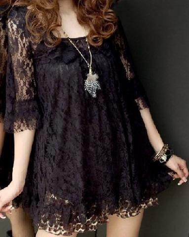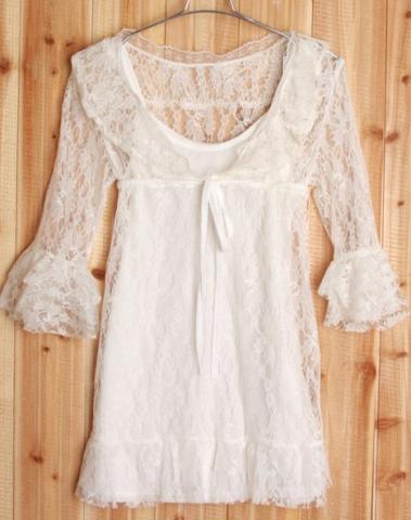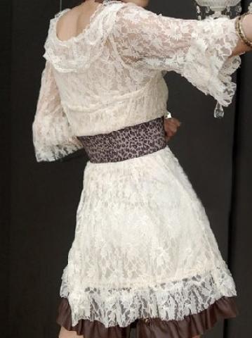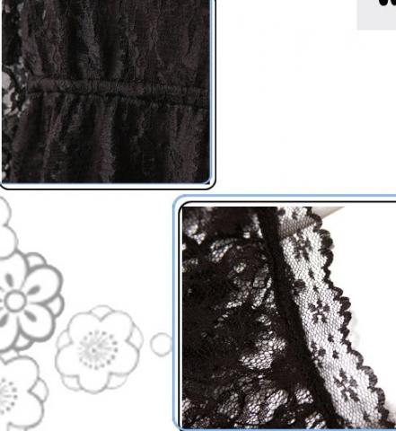 Dvi spalvos. Dviejų dalių. Išmatavimai: viršutinė dalis: ilgis 65cm, biustas 70-88cm, klubai 90cm, pečiai 35cm, rankovės 37cm; vidinė dalis: ilgis 55cm, biustas 76-92cm, klubai 90cm. Medžiaga: nėriniai.