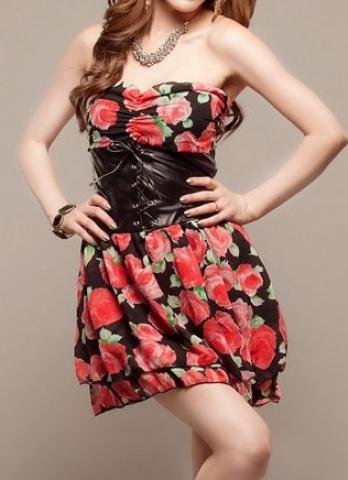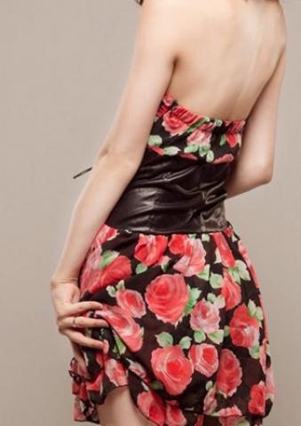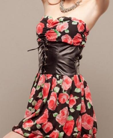 Išmatavimai: ilgis 68cm, biustas 70-82cm, liemuo 68cm. Medžiaga: šifonas + PU.