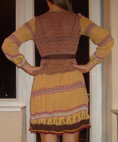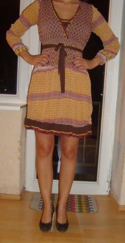 Marga, rastuota suknele. Su pasijoniu, nepersisviecia. Nauja (100proc. viskoze, raso, kad S dydis, bet nuotraukoje mergina devi M (1,71 cm ugis). Auksciau keliu.