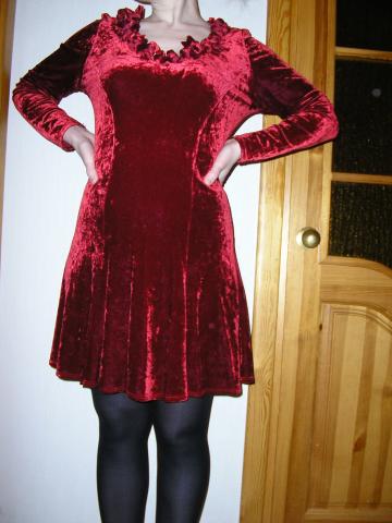 Suknelė nuo 158-165cm. liemens apimtis 36*2cm, krutines apimtis 40(42)*2cm, gali buti didesnes apimtys nes medziaga tempiasi. ilgis 81cm. Labai puosniai atrodo. Kilmes salis - Prancuzija.