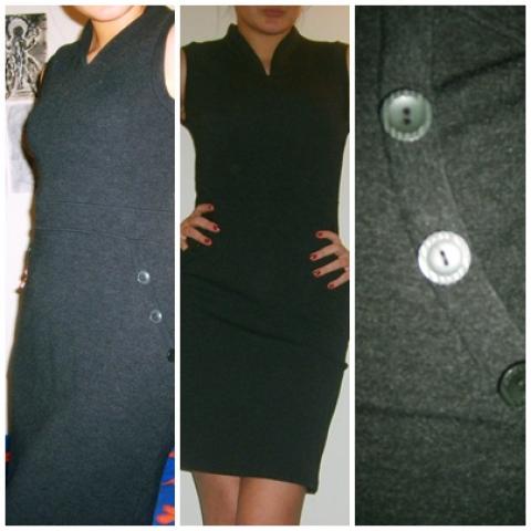 Sakyčiau sarafanas, bet kas nors gali ginčytis kad suknelė. Nei karto nenešiotas, tamsiai pilkos spalvos, kišenių su sagutėm imitacija. Ant manęs tiesiog negerai (klaikiai) atrodo, kitaip sakant, ne aukštom panelėm...