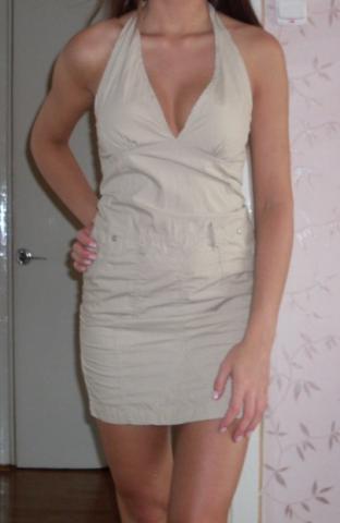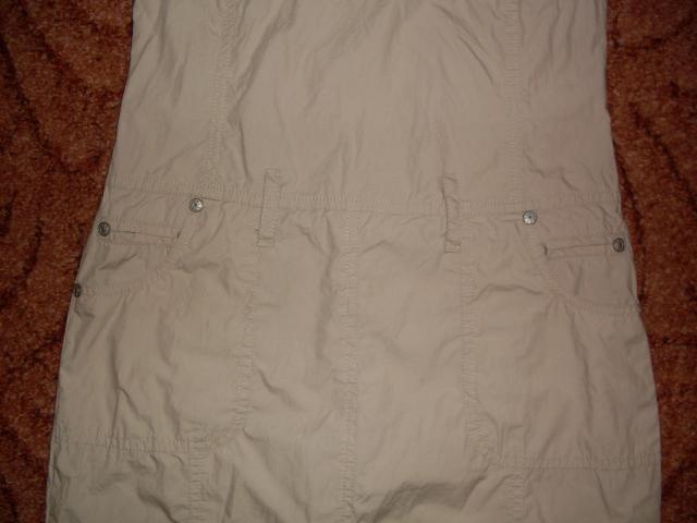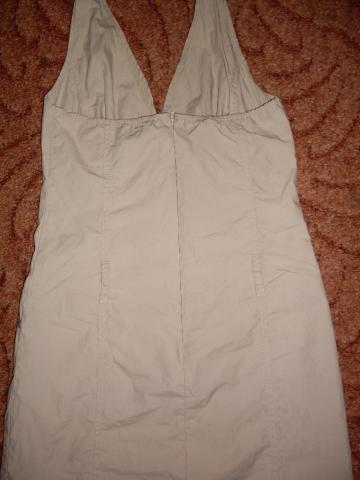Grazi suknyte/sarafanas,medziagyte kaip sarafano,nugaroje uzsisega uztrauktukas.Galima isiverti dirza,atrodo labai graziai.Nedevetas,tad naujas.Tinka ir S dydziui.Keitimas nedomina.