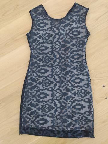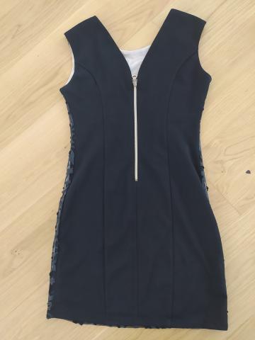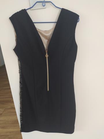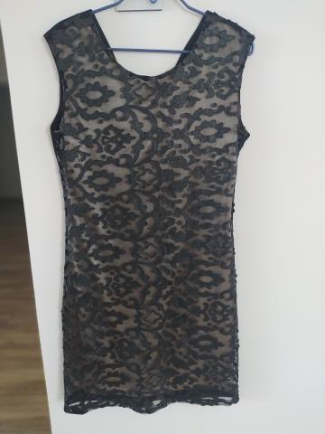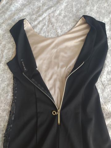 Porą kartų dėvėta stilinga suknelė. Dydis rašo L, bet suknelė mažinta, puikiai tinka M dydį nešiojančiai. Išmatavimai: ilgis 87 cm, krūtinė 88 cm, liemuo 76 cm, klubai apie 90 cm. Medžiaga tampri. Tinka tiek progai, tiek kasdienai.
