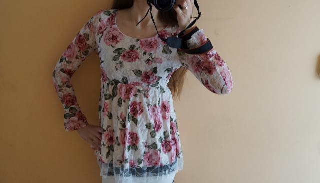 Suknelė su rožėmis ir nėriniais nauja S-XS