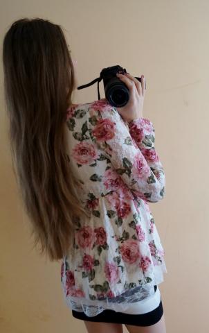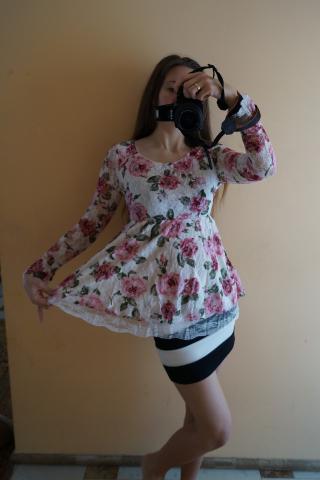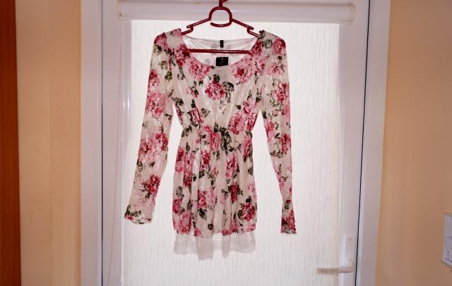Žavi lengvutė romatiška suknelė. Nesiglamžanti. Ilgis 70 cm, ties liemeniu, patempus apie 40 cm, tar pažastų 42 cm, rankovės nuo pažasties 45 cm, nuo peties 60 cm. Tiks XS, S dydžiams.