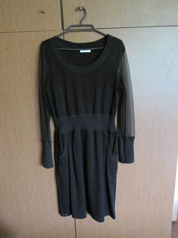 Parduodu tik keletą kartų apsivilktą suknelę su švarkeliu. Švarkelis 3/4 rankovėmis ir trumpu liemeniu. Suknutė aukščiau kelių, su kišenėmis, rankovės smulkaus juodo tinklelio, tačiau apsirengus kartu su su švarkeliu, matomi tik storo audinio rankogaliai. Sudėtis: 97% tencel (neradau lietuviško vertimo) ir 3% elastano. Galima skalbti 40 laipsnių temperatūroje. Pagaminta Turkijoje. Dėl dydžio sunku pasakyti, parašyta tiesiog 4.