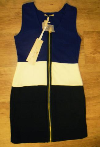 Graži, nauja suknelė, seksualiai atrodo ant kūno, su užtrauktuku priekyje. Trijų spalvų : mėlyna, balta, juoda. Dydis SM Jeigu reikia ką paklaust, rašykit man :)