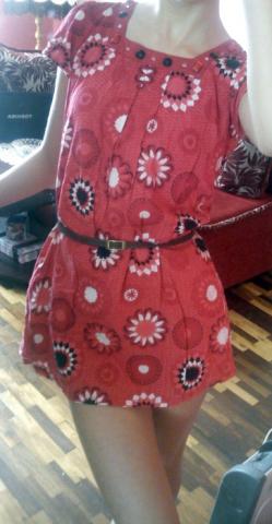NAUJA! Labai graži, nevilkėta nei karto. Gėlėta, raudonos spalvos suknelė/tunika, su labai gražia apykakle. :) Tinka prie timpų ar tiesiog vasarą be nieko, taip pat su dirželiu ar be jo. ;) Fotografuota ant 1,69cm panelės. Defektų neturi!