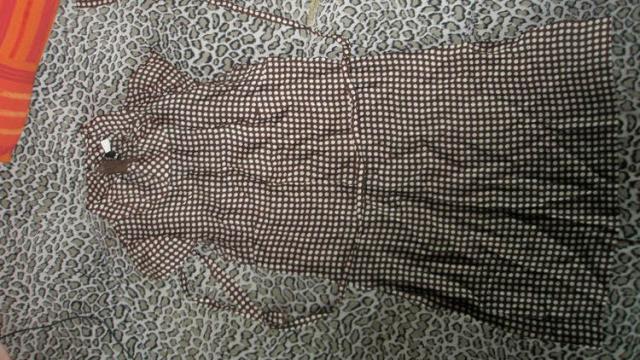 Ruda su baltais burbuliukais.Labai žavi.;} labiau tiktu smulkiai panelei.S dydis. Šiaip ji lb trumpa,tai gal labiau panašu būtu į tuniką. ;D