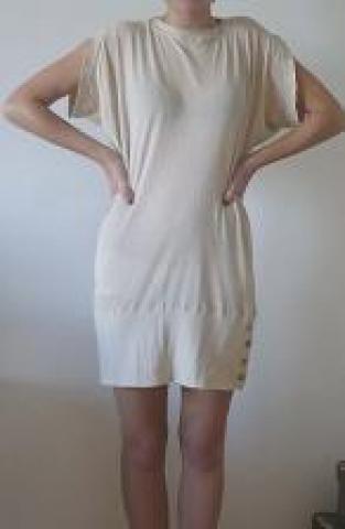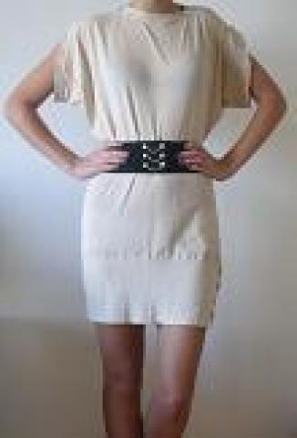 truputį persimatanti suknelė, be diržo, bet ir jį mainyt galiu, kairiam šone sagutės