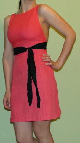 Lininė suknelė, su diržo imitacija.Juodas diržas yra prisiūtas