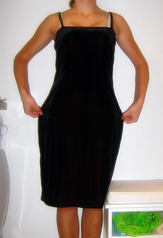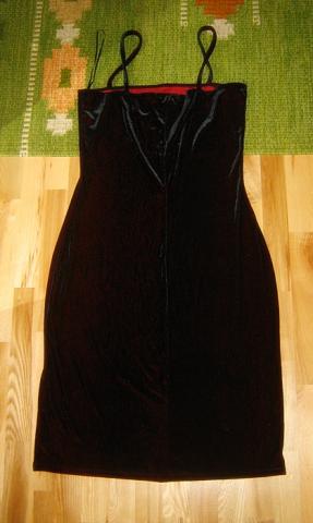 Švelnios medžiagos suknelė. Spalva ne juoda, taip atrodo tik nuotraukose. Labiau panaši į bordo. Buvo nuplyšusios šleikutės, tad teko prisiūti.