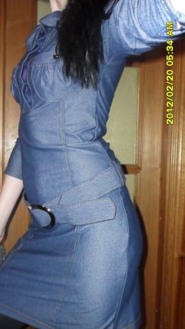 Melyna suknele su dirzu. Liemuo 35cm, ilgis 92cm. Tampri.