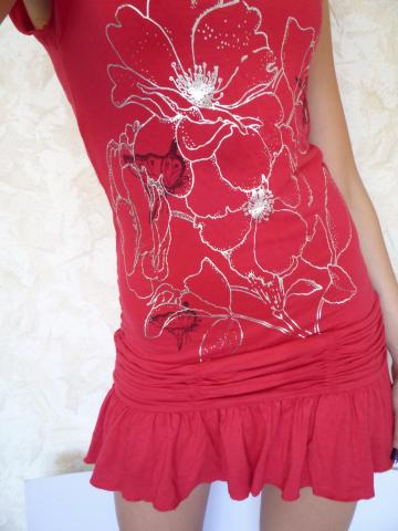 Puošni suknytė trumpomis rankovėmis. Su paveikslėliu ant priekio. Defektų neturi. Dėvėta vieną kartą