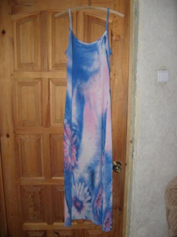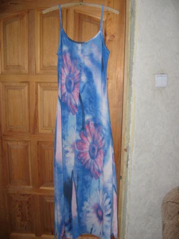ilga, graži ,mėlyna, gėlėta ir lengva vasariška suknelė su skeltais šonuose