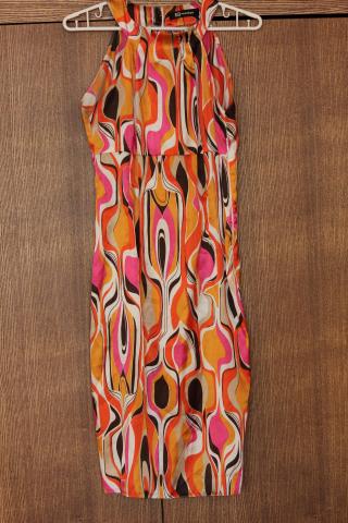 Marga, pakankamai ryski, lengva silkine suknute vasarai. MONTON prekinis zenklas.buvo uzsideta gal tik keleta kartu,labai geros bukles, kaip nauja, be jokiu defektu, jei reikalingi ismatavimui galiu tikrai atsiust.