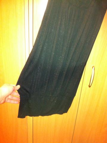 Suknelė lengvo kritimo, šiek tiek suimta viršuje, ties krūtine ir suknelės apačioje. Nevaržantis rūbas. Medžiaga yra šiek tiek blizgi, taigi tinka tiek kiekvienai dienai prie tamprių ar pėdkelnių, tiek ir vasaros nakčiai prie nuogų kojų. Suknelė yra nei kiek nenešiota