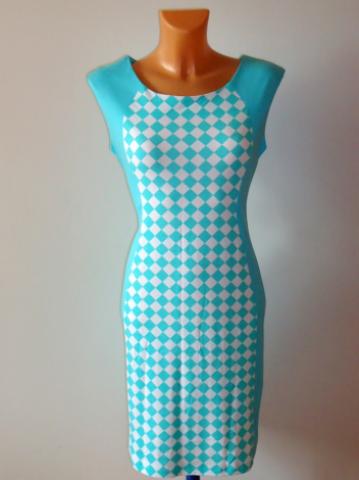dydisS/M Graži suknelė trumpomis rankovėmis. Suknelės šonai vienspalviai , vidus šachmatinis įsiūvas. Sudėtis : 95 proc. medvilnė , 5 proc. lykra . Minšta , maloni , švelni medžiaga . Vasariška suknelė.