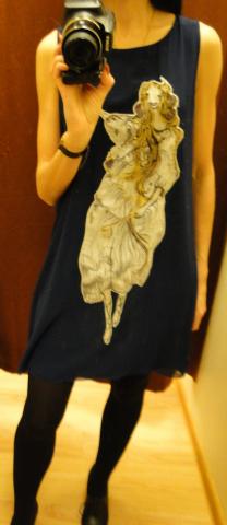 Nauja#firmine#suknele#tunika#melyna#be rankoviu#su angeliuku#sifonine#100% poliesteris#sventine#progine#S/M dydis#kremine#