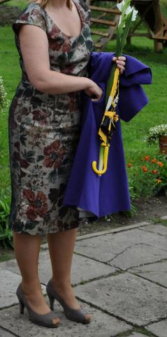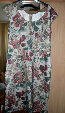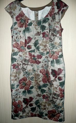 Labai geros būklės, gėlėta suknelė. Apatinė suknelės dalis - iš gėlėto audinio, viršutinė dalis - tiulis.